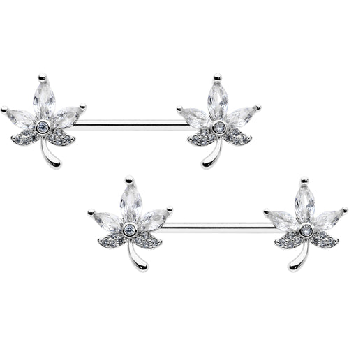 14G 3/4 Clear CZ Gem Pot Leaf Barbell Nipple Ring Set